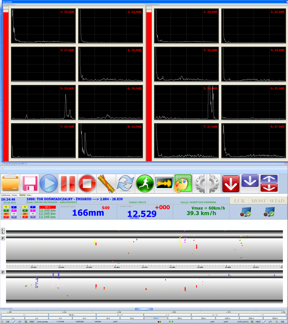 Projekt modernizacji aparatury pomiarowej wagonu defektoskopowego realizowany dl PKP PLK S.A. Pojazd został wyposażony w 18-kanałową aparaturę, realizującą badanie każdego toku szynowego za pomocą 8+1 głowic ultradźwiękowych, w ustalonym ze Zleceniodawcą schemacie. Pomiary mogą być realizowane z prędkością do 60 km/h, co oznacza, że każdy kanał ultradźwiękowy jest wyzwalany z częstotliwością PRF równą około 5kHz.