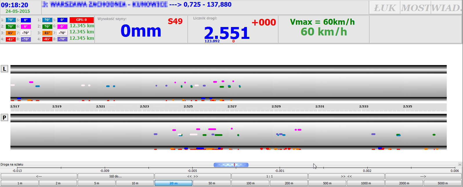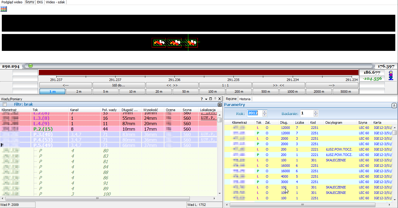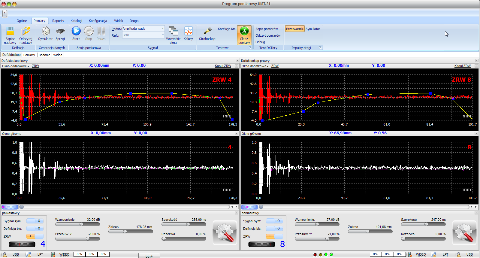 Krok pomiarowy wynosi 3.5mm. Oprogramowanie sterujące umożliwia strojenie parametrów aparatury, monitorowanie przebiegu pomiaru, dzięki wszechstronnej wizualizacji stanu oraz wstępną obróbkę i rejestrację wyników pomiarów. Komplementarne oprogramowanie edycyjne przeprowadza wstępną automatyczną analizę wyników pomiarów i wspomaga operatora w inspekcji wyników, korekcie analizy automatycznej oraz wytworzeniu dokumentacji pomiarowej. Oprogramowanie edycyjne może być uruchomione na wielu stanowiskach komputerowych równolegle.